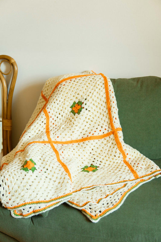 Ivory Orange Flower Granny Blanket