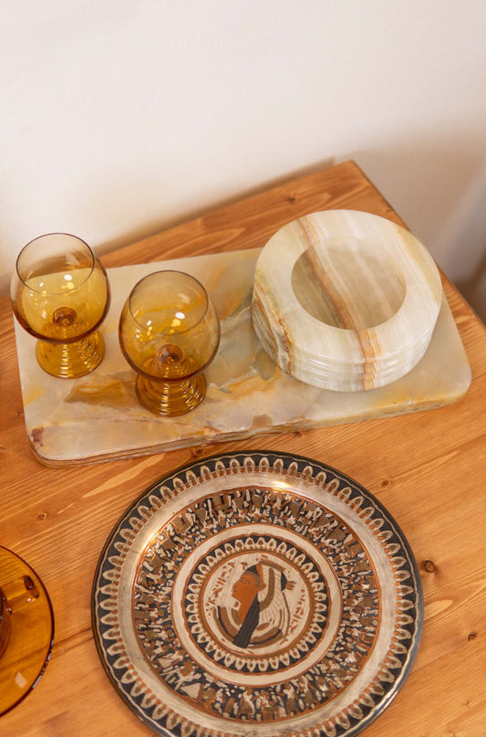 70-80s Onyx Round Ashtray & Plate
